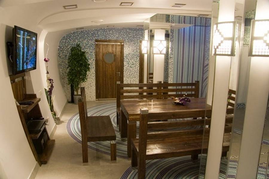 Удобная гостевая комната, бар с различными напитками, включая оздоравливающие коктейли, зона ТВ и караоке – все это создает располагающую для отдыха в компании друзей обстановку.