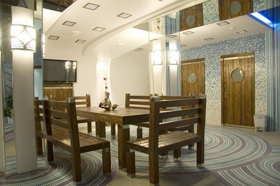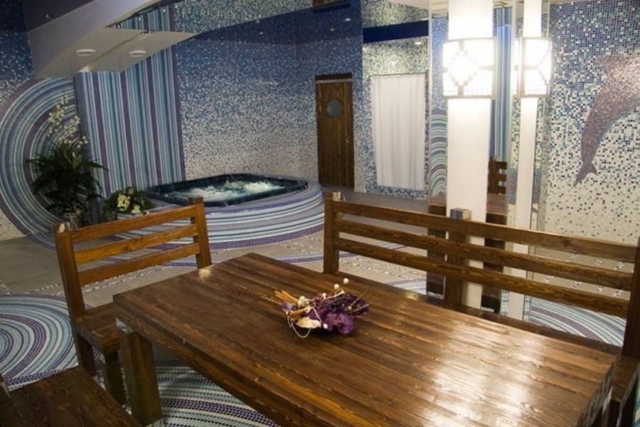 Гостям предлагается финская парная, банные принадлежности, несколько видов веников, а также натуральные ароматические добавки. После отдыха в парной можно сменить температуру и обстановку в просторном бассейне. Для особо притязательных клиентов предлагается СПА-бассейн и гидромассаж. Еще на стадии заказа сотрудники заведения помогут выбрать программу отдыха.